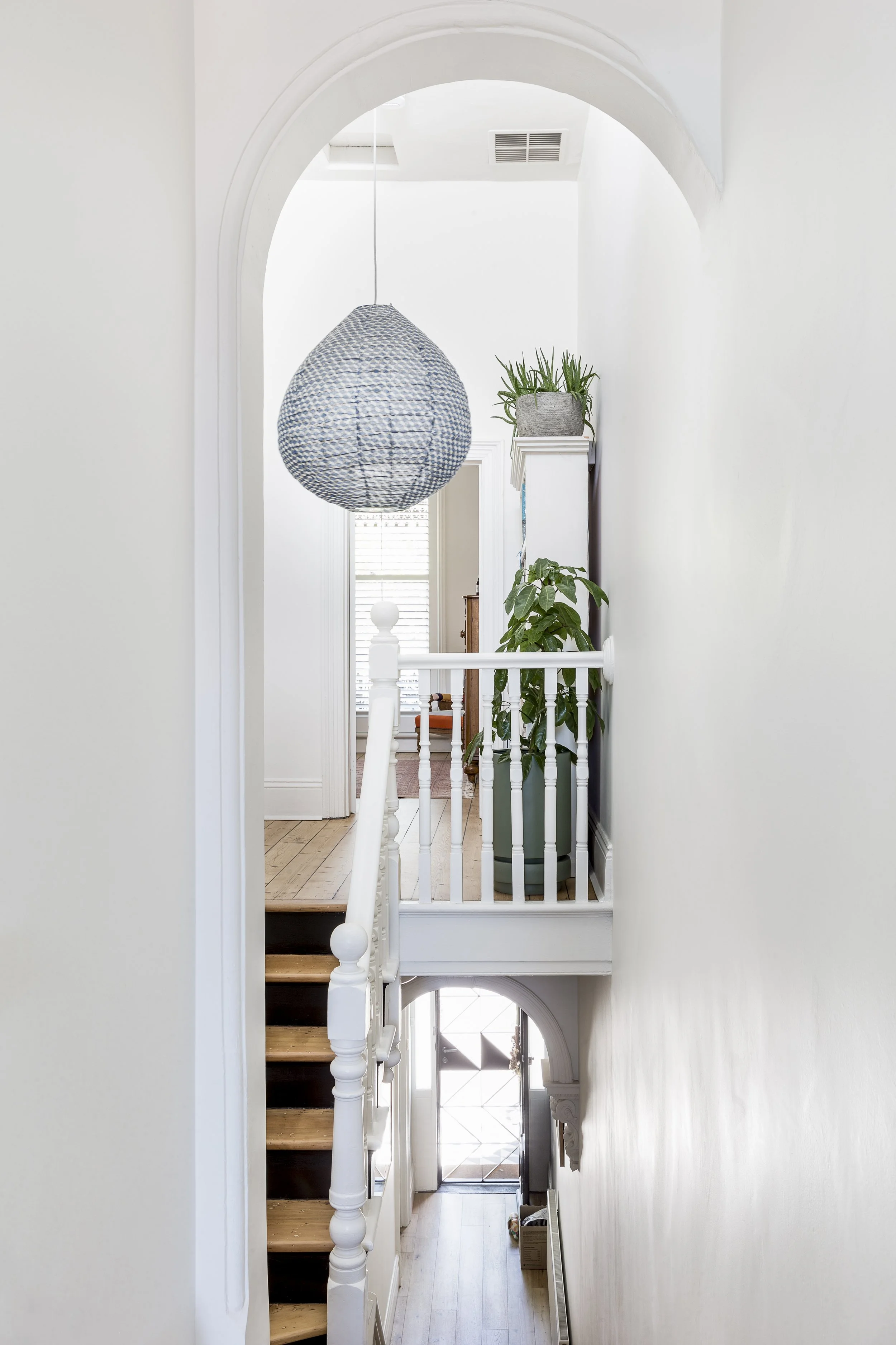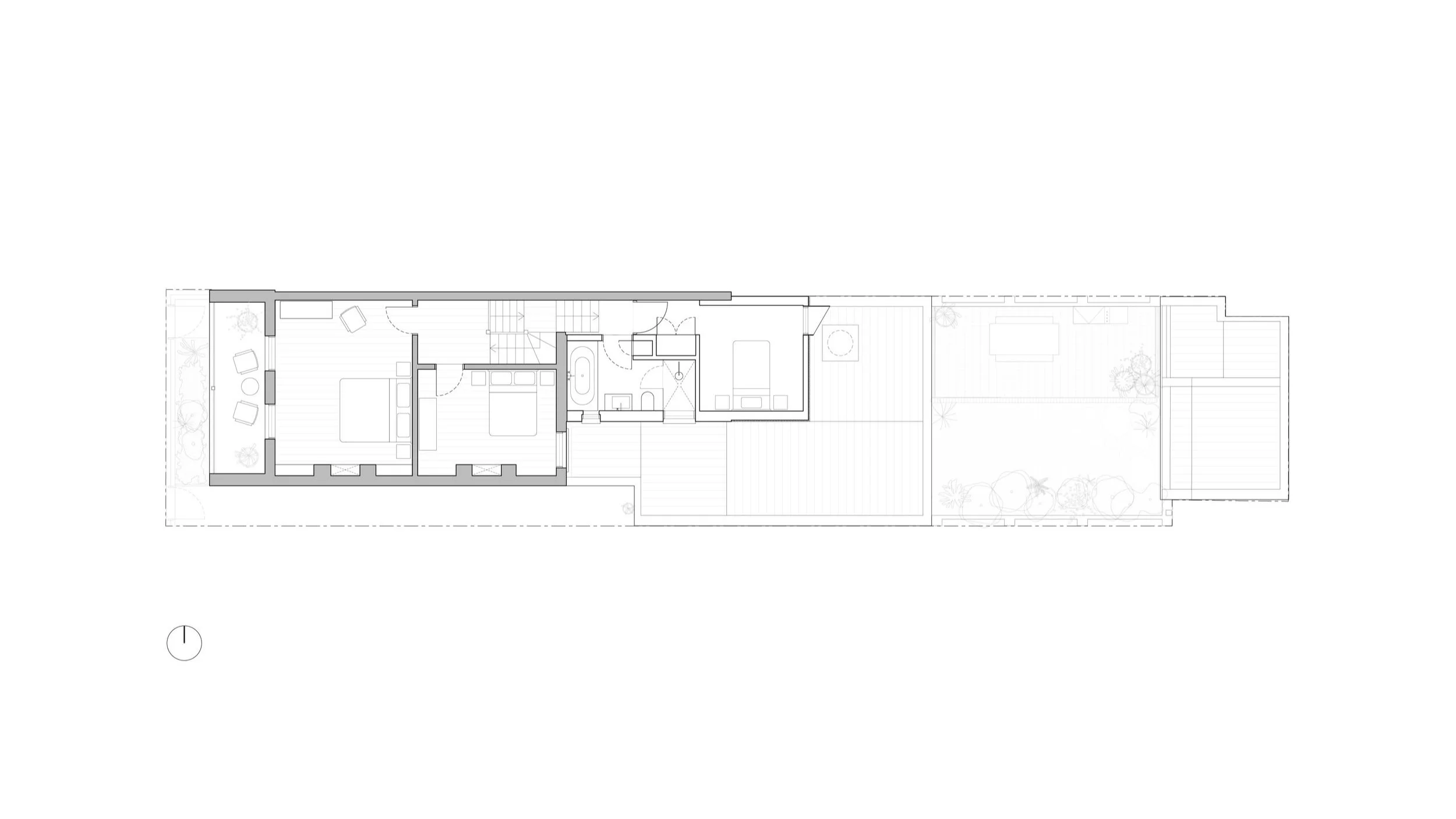 This multi-functional inner urban dwelling is punctuated by a lush courtyard space which separates the music studio from the main house. White masonry extends from internal to external space to envelope the private garden and create a calming backdrop to the busyness of family life.